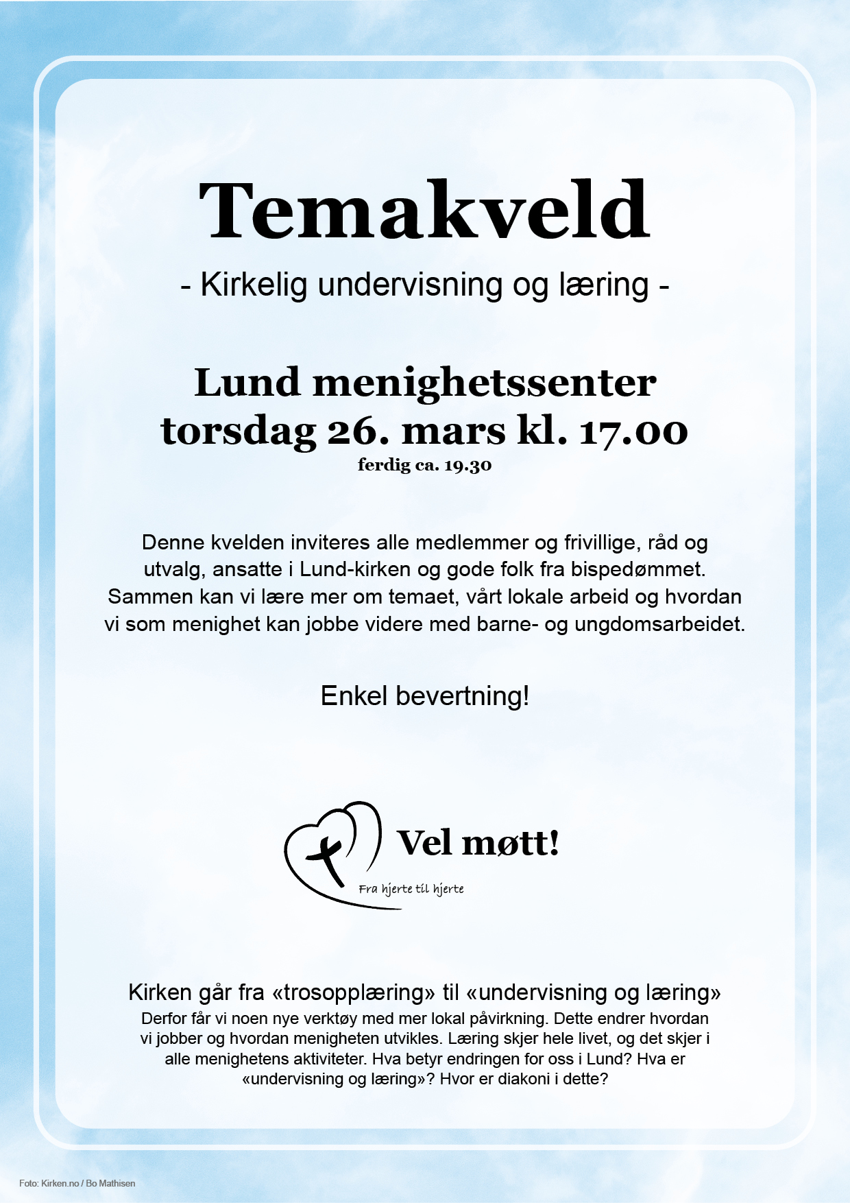 Velkommen til temakveld på Lund menighetssenter torsdag 26. mars kl. 17.00!